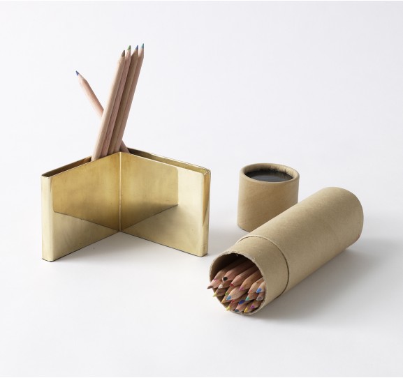 Love this brass pen or pencil holder. It will immediately chic up any office desk. Over here.