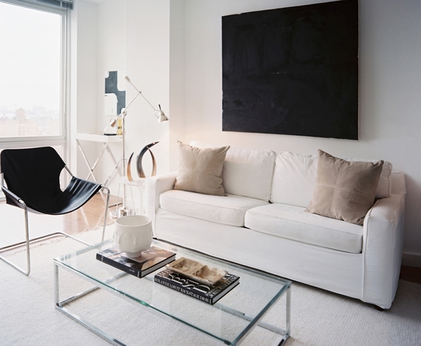 This space is airy, unpretentious and happy. I love the greenery and the creams, it reallyopens everything up. This space is a good translation for the sporty girl above because it’s minimal with good statement pieces and no frills. Those floor lamps are awesome andthey’re from West Elm.