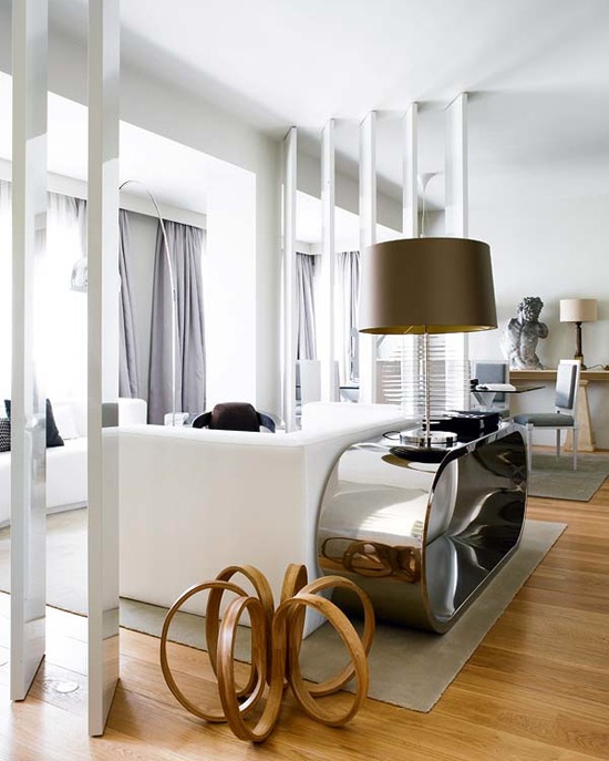 This space is so sculptural and beautiful. There’s not a ton of color in this room, just neutrals and different finishes that add interest. Like the woman looking for her keys, this room has a very strong core. Those room dividers are out of this world. I dream of imitating them in my own home one day in the near future. I hope that doesn’t put too much pressure on my husband.