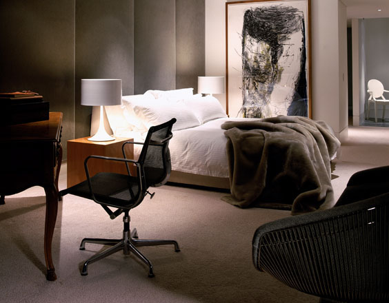 The canopy bed would be a good transition for her coming in from the outside. I love the rustic wood beams with the linen fabric hanging down. It’s soft, feminine and organic. I don’t think she can be unhappy in this bedroom.