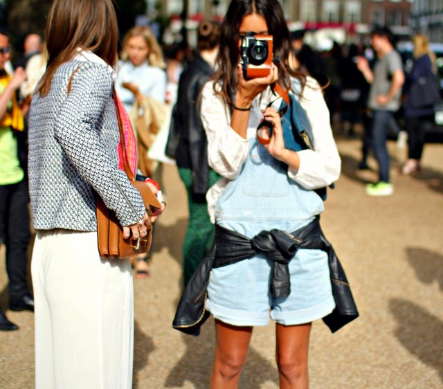 I love those overalls with the leather jacket wrapped around her hips; She has a very down-to-earth tomboy vibe. The vintage camera she’s sporting tells us she likes a good mix of old and new. And anyone who likes a good mix knows good design.