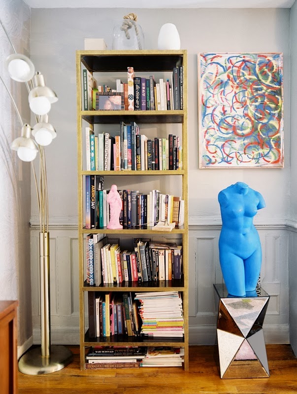 This vignette would definitely be part of her home. Its collected, a little messy and beautifully eclectic. Anyone who has a naked sculpture of a woman in blue is either crazy or has an eye for art. I’m going with ‘an eye for art’ because that sculpture is pretty amazing. I love how this little area breaks all the ‘rules’ so perfectly.